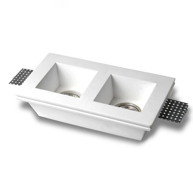 Projector cerâmico de tecto para lâmpadas MR16 ou GU10 . Este projector deve ser encastrado em gesso cartonado e betumado após a construção da parede ou tecto para ficar à face com os mesmos, ficando assim inserido na superfície.(sem aro á vista)
